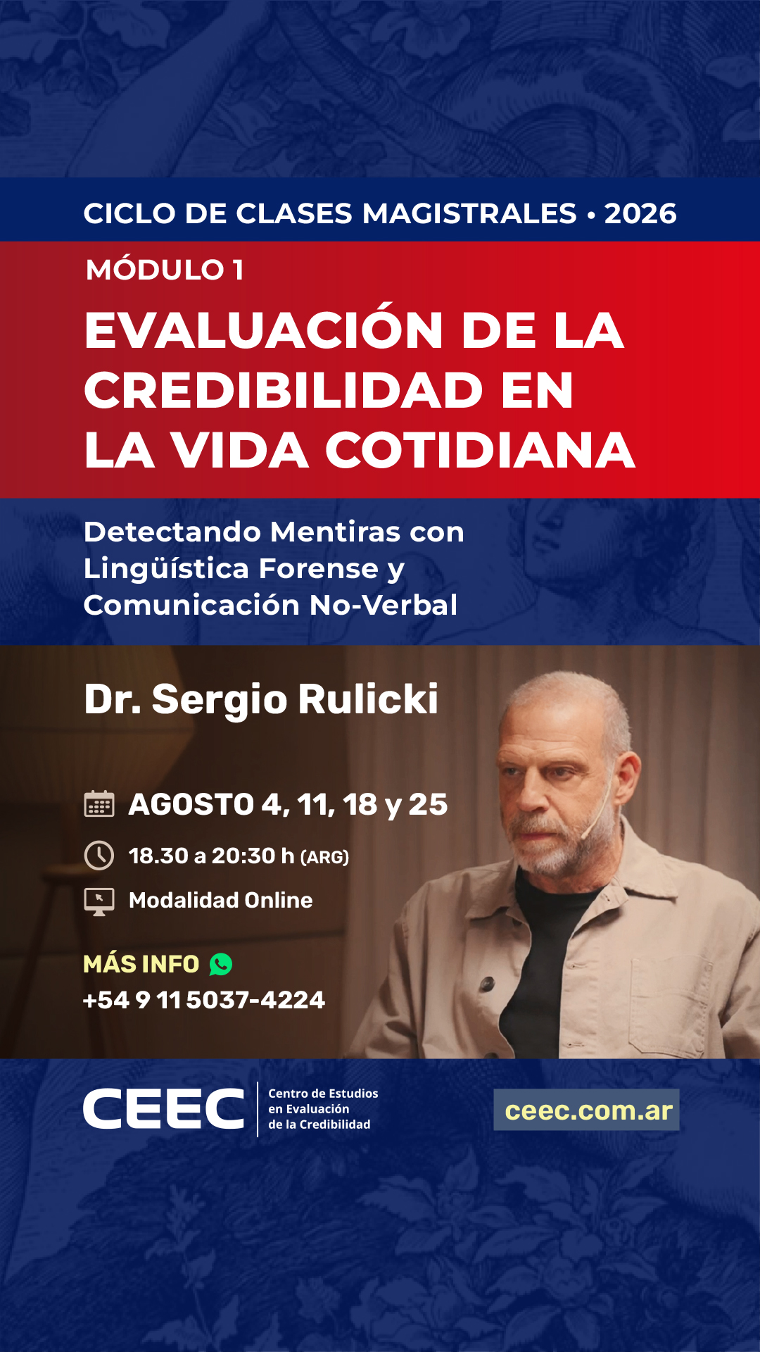 Los participantes incorporarán los fundamentos de la RETROINGENIERÍA DEL ENGAÑO, nuestro método original para la Evaluación Forense de la Credibilidad. Este enfoque integra de manera sistemática el análisis de la Comunicación No-Verbal (CNV) con la Lingüística Forense, permitiendo descomponer técnicamente un discurso para identificar patrones compatibles con veracidad o con fabricación deliberada.